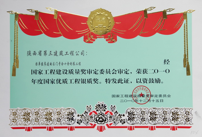 國家優(yōu)質(zhì)工程銀質(zhì)獎(jiǎng)