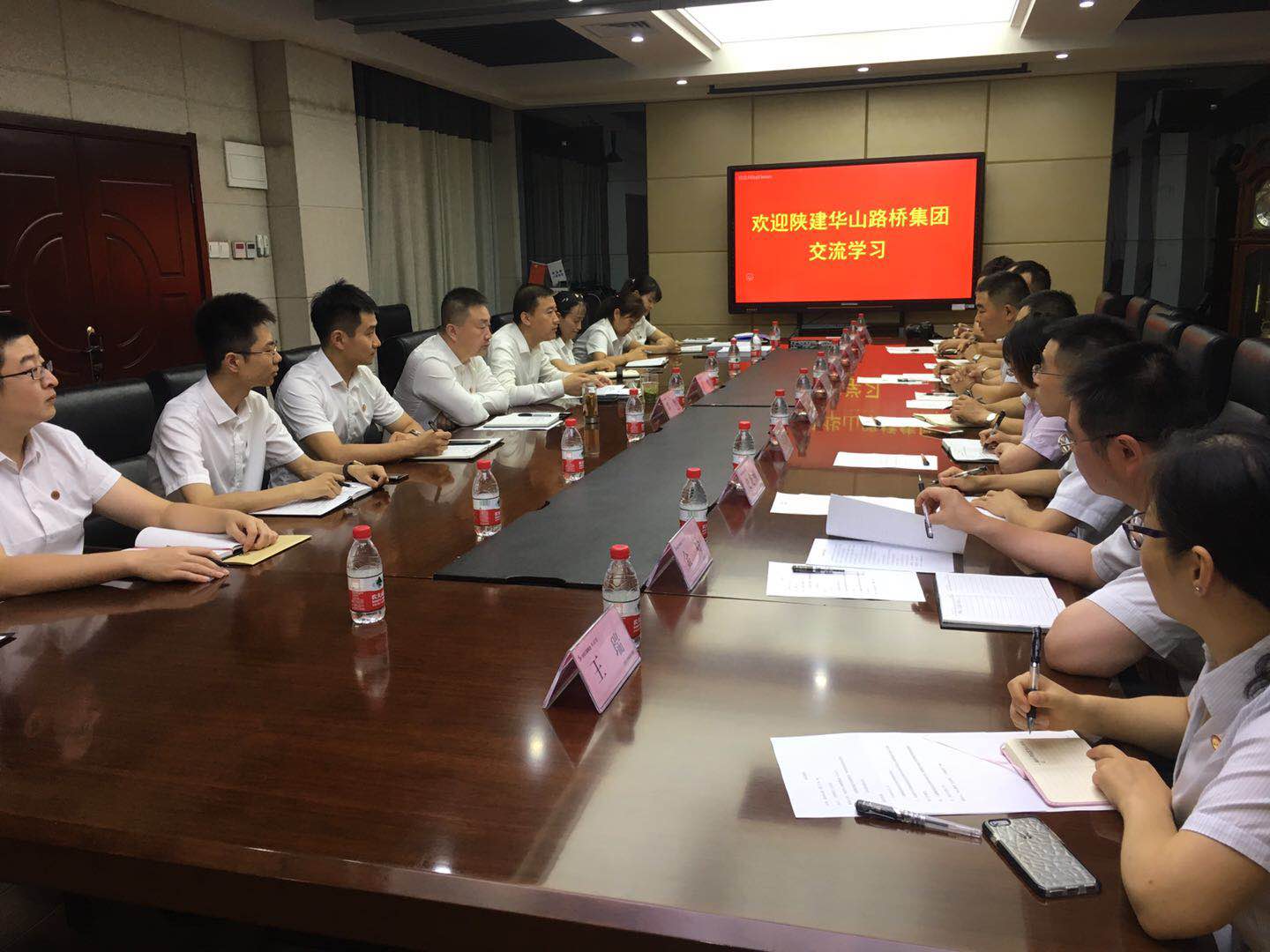 6月26日,陜建華山路橋集團副總經理劉軍濤,總經理助理王建濤、副總工程師榮學文一行10人到集團公司就大集采管理、采購招議標、采購合同管理、采購成本管理等方面進行了探討和交流。集團公司副總經理李哲,采購管理部部長邵華及采購管理部相關業務人員參加本次交流會。