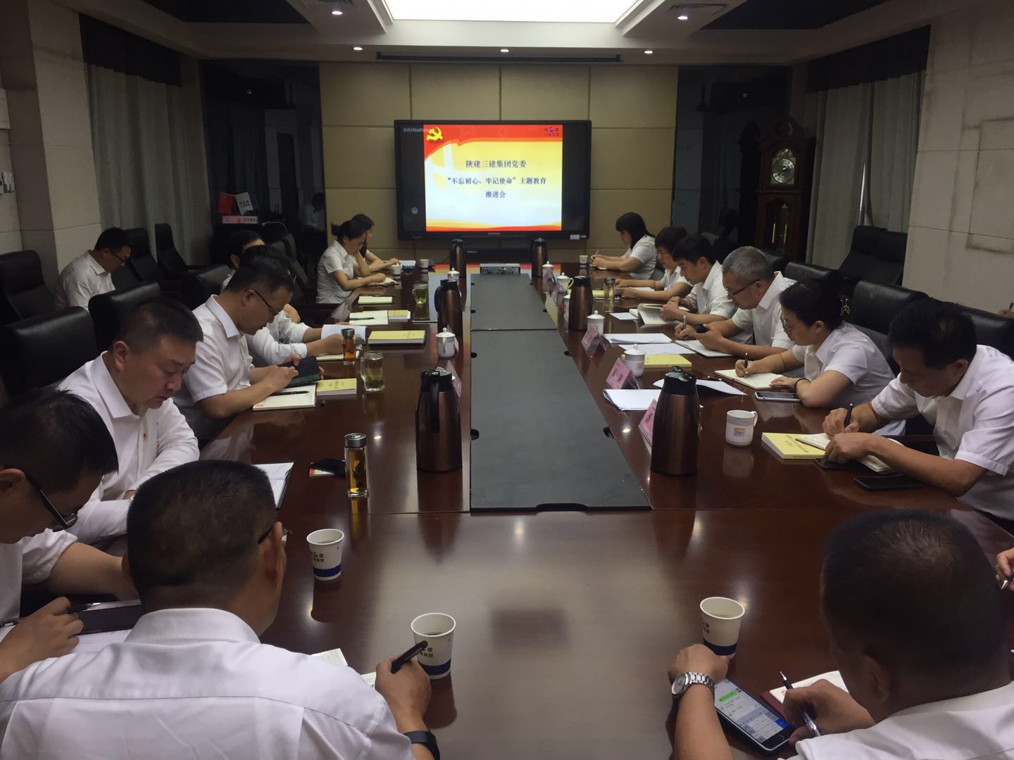 李家衛帶領大家學習了《習近平新時代中國特色社會主義思想學習綱要》中的“習近平新時代中國特色社會主義思想是黨和國家必須長期堅持的指導思想”篇章,傳達了陜建集團穩增長工作會議精神。他強調,“不忘初心、牢記使命”主題教育,是黨中央做出的重大決策部署,要把主題教育工作與當前重點工作緊密結合,同部署、同落實,要通過主題教育工作的開展總結上半年不足,部署推進下半年重點工作。并提出了三點要求:一是原汁原味讀原著,領導班子成員要集中精力讀原著、學原文、悟原理,帶頭學習、帶頭研討,確保理論學習有收獲,思想政治受洗禮;二是要以半年工作總結為新起點,沉下身子去調研,找癥結,列舉措,破難題,為全年目標完成再拼搏再沖刺;三是要主動出擊,改變被動工作的局面,各部門要強化作風建設,及時推進重點工作的落實。