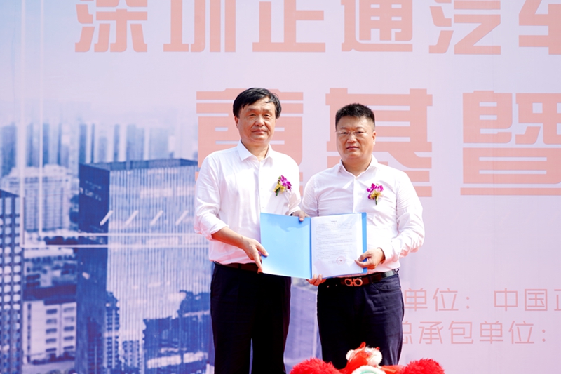 9月7日上午,位于深圳市龍華區和平路上的深圳正通汽車創新服務產業園內彩旗飄揚,鼓聲震天,一輛輛工程車整裝待發,項目員工身著工裝,精神抖擻。這是陜建集團進軍大灣區市場的重點建設項目,也是三建集團集團在大灣區負責施工的首個大型項目,是集團公司“走出去”戰略邁出的重要一步。出席典禮儀式的主要領導有中國正通汽車服務控股有限公司(以下簡稱正通公司)副董事長王昆鵬、陜建集團黨委副書記、總經理張文琪,副總經理雷曉義、總會計師莫勇、集團公司董事長李家衛、工會主席張穎、總會計師王斐、副總經理任浩以及來自建設單位和施工單位的100多人共同見證了這一歷史時刻。