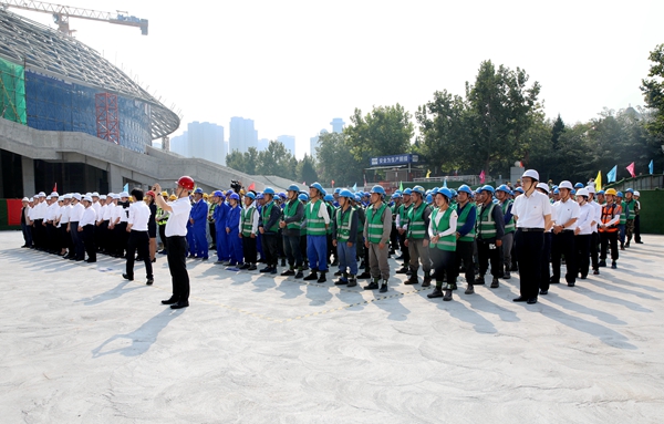 來自十四屆全運會籌委會場館建設(shè)部、省體育局、省體育館、省統(tǒng)建建辦、設(shè)計單位、監(jiān)理單位、三建集團(tuán)、機(jī)施集團(tuán)、安裝集團(tuán)代表及工程建設(shè)人員參加了合攏儀式。