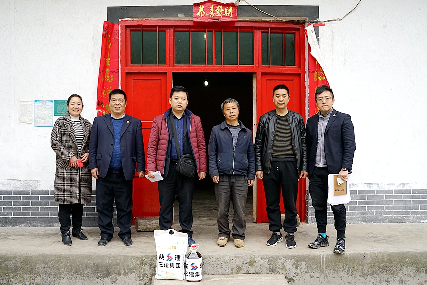 2020年3月30日,三建集團(tuán)扶貧工作小組與略陽縣金家河鎮(zhèn)政府工作人員慰問黃家溝村建檔立卡貧困人員何興平合影。