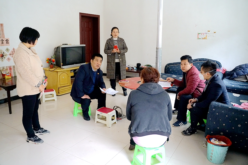 2020年3月30日,三建集團(tuán)扶貧工作小組與略陽縣金家河鎮(zhèn)政府工作人員在黃家溝村建檔立卡貧困人員張麗家走訪。張麗曾經(jīng)在酒店工作多年,張麗丈夫長期在外務(wù)工,因次張麗承擔(dān)了沉重的家務(wù)負(fù)擔(dān),需要在家照顧年邁的老人和兩個小孩,外出務(wù)工最讓她放心不下的是兩個年幼的孩子。