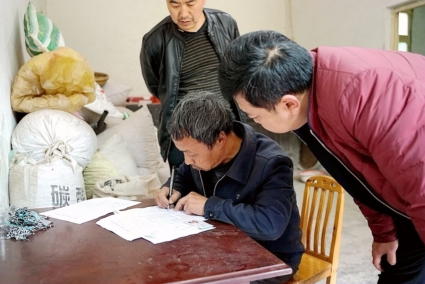2020年3月30日,黃家溝村建檔立卡貧困人員何興平在三建集團(tuán)扶貧工作小組成員劉小康指導(dǎo)下填寫建檔立卡幫扶人員就業(yè)雙向協(xié)議書。何興平曾在廣東東莞工廠工作過,有一定外出務(wù)工經(jīng)驗,三建集團(tuán)幫扶就業(yè)政策給予了他更多的工作選擇機(jī)會。