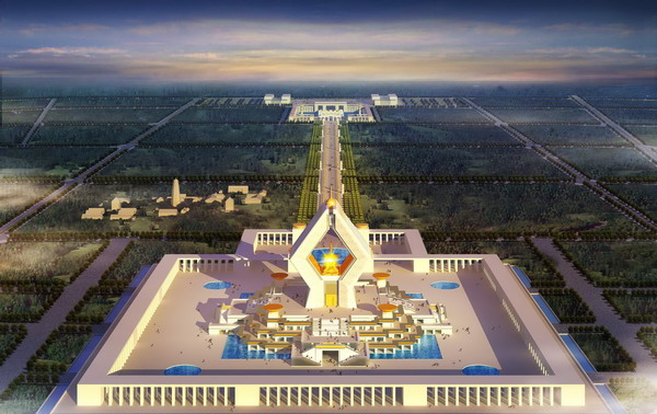 法門寺文化區建設規劃位于法門鎮新鎮區的東側,南北長2165米,東西寬952米,總占地面積3092畝。景龍路以北為佛區,在以岐陽路東西兩側分別為僧區、法區,三區各占地約1000畝。如此形成北方中央是佛指舍利靈境世界,西方為佛教文化苑,東方為寺區,即佛、法、僧,佛教三寶俱在。佛在中央,法、僧東西護持,佛教大乘、小乘兼弘,顯密圓滿,合十舍利塔居于佛區的中央, 功能及設施完善。總建筑面積為76690平方米,其中地上為60225平方米,地下約為16465平方米。工程總高147米,寬54米(裙房底盤寬253米),合十雙手的特殊造型,其恢宏的氣勢不僅傳承佛教建筑的特色,更以現代化的技術融合古今中外建筑之精華。